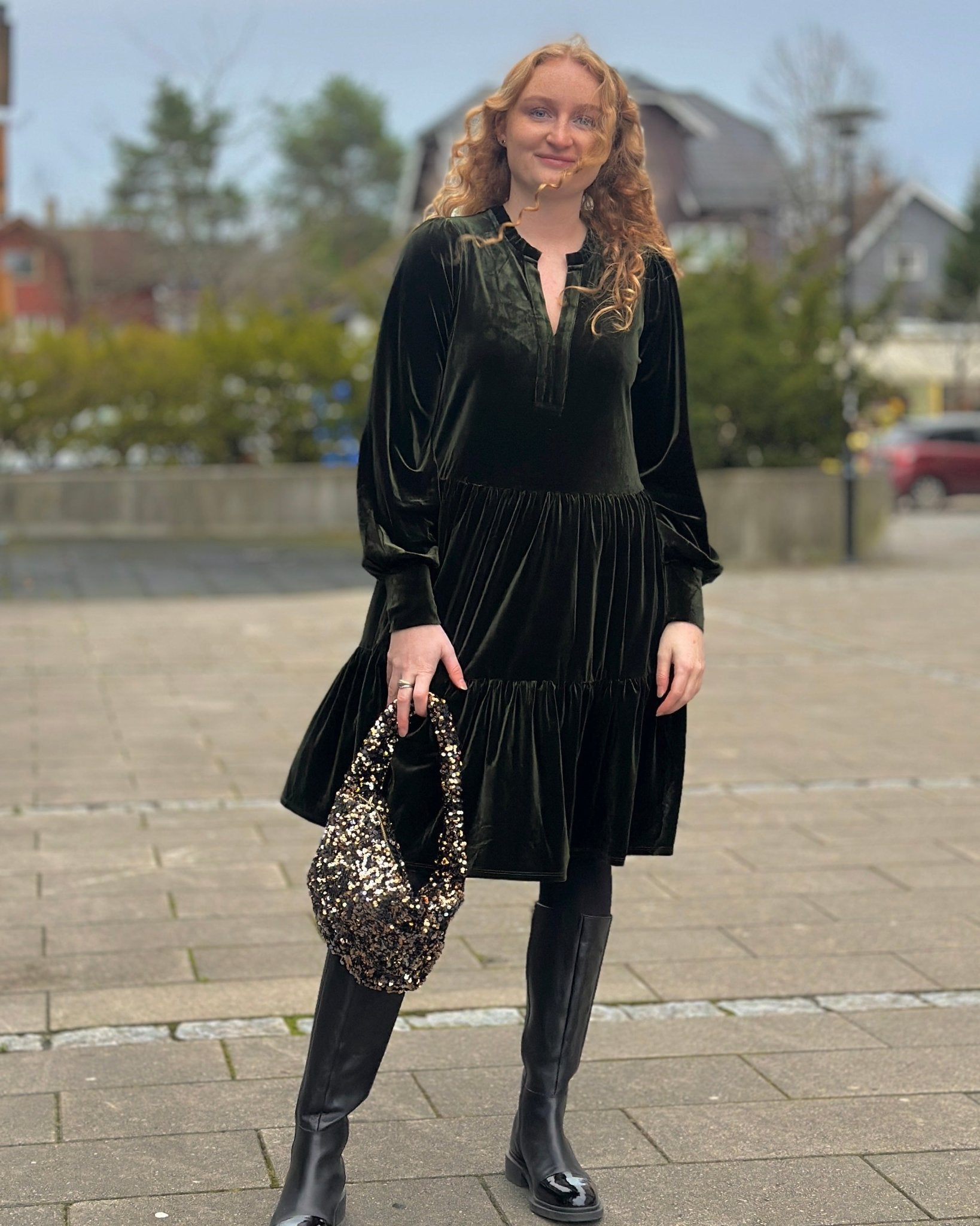 Nydelig kjole. Flatterende fasong. Veldig fornøyd.