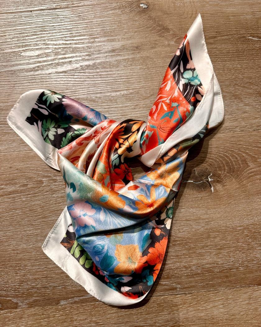 Med sine 70 x 70 cm gir skjerfet rom for kreativ styling. Størrelsen gjør det enkelt å bruke det rundt halsen, som hodeplagg eller som et fargerikt tilbehør til vesken din.