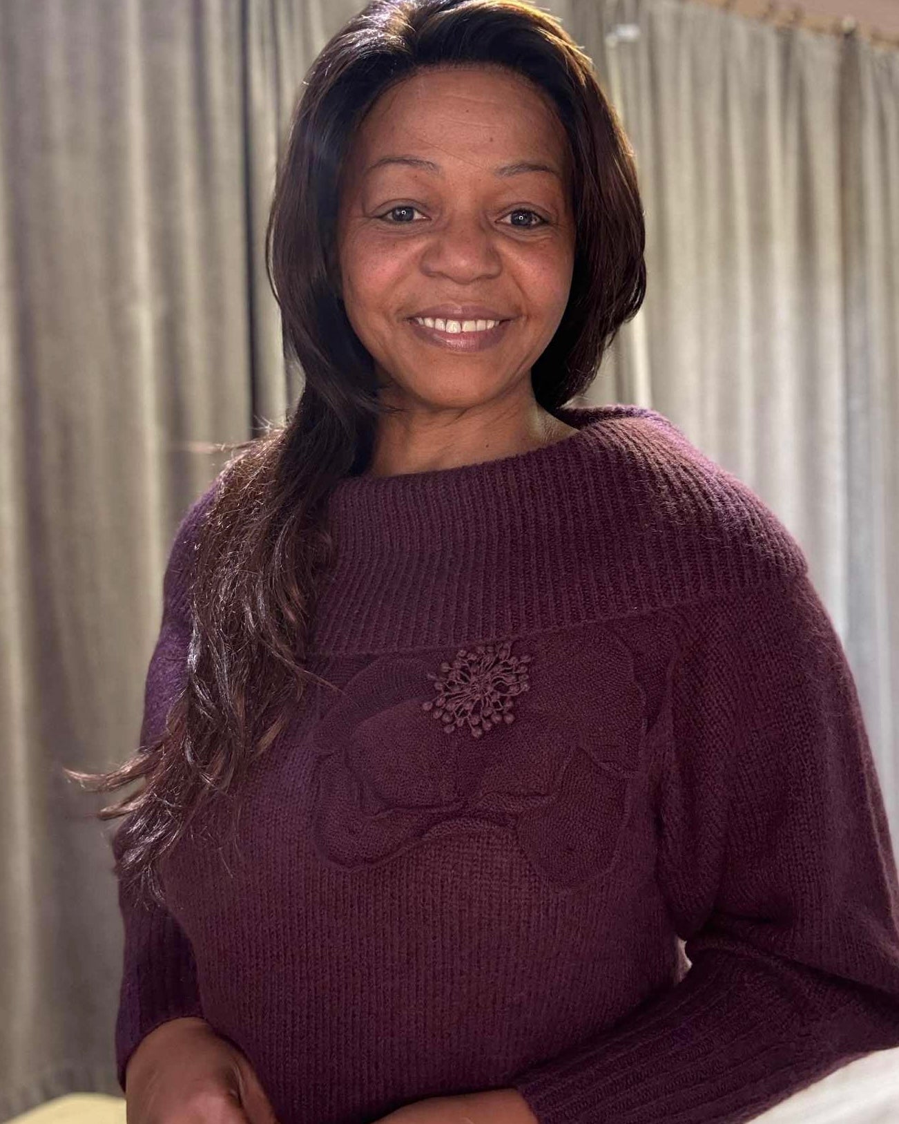 Burgunder farge i myk strikk