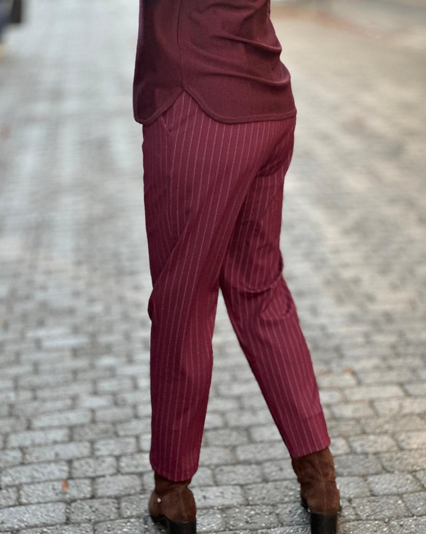 Den elastiske midjen gjør buksene enkle å ta på og av, samtidig som de tilpasser seg kroppen din. Beltestropper gir mulighet for ekstra tilpasning. Buksene passer godt til både avslappede og mer stilige anledninger.