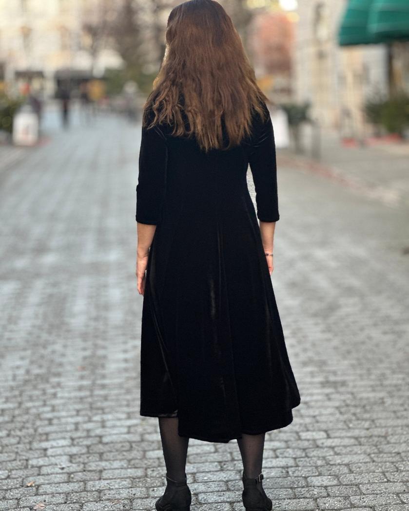 Denne velourkjolen fra Found By Stili har en A-formet fasong som fremhever midjen og gir en balansert silhuett. Midi-lengden gjør den egnet for både hverdagsbruk og mer formelle sammenkomster, mens det myke velourstoffet gir en behagelig følelse mot huden.