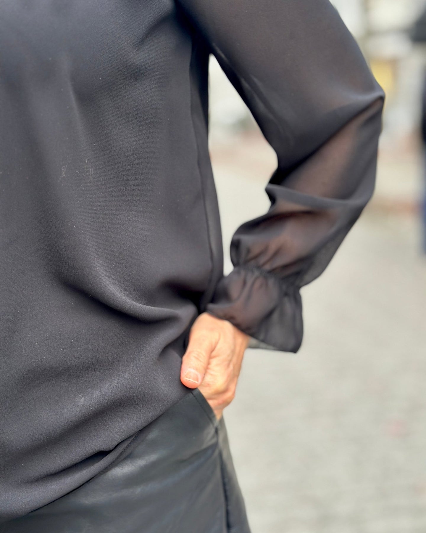 Blusen har en liten elastikk i ermet, som gir en fin avslutning på ermet. Normal i str.
