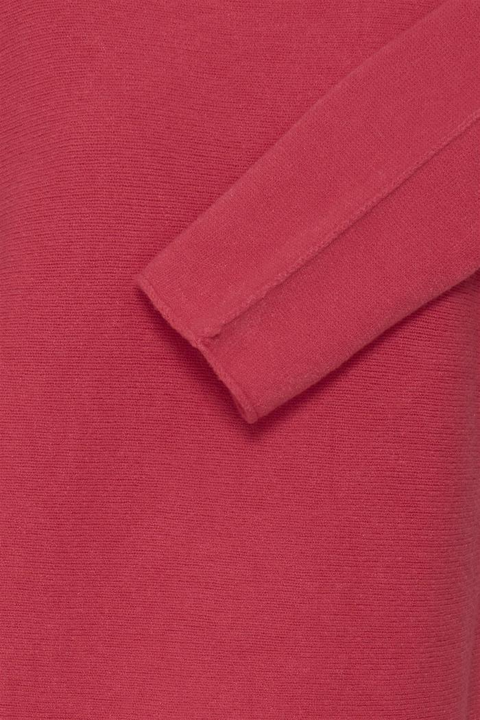 Rød strikket stoff med lang erme, del av en bluse.