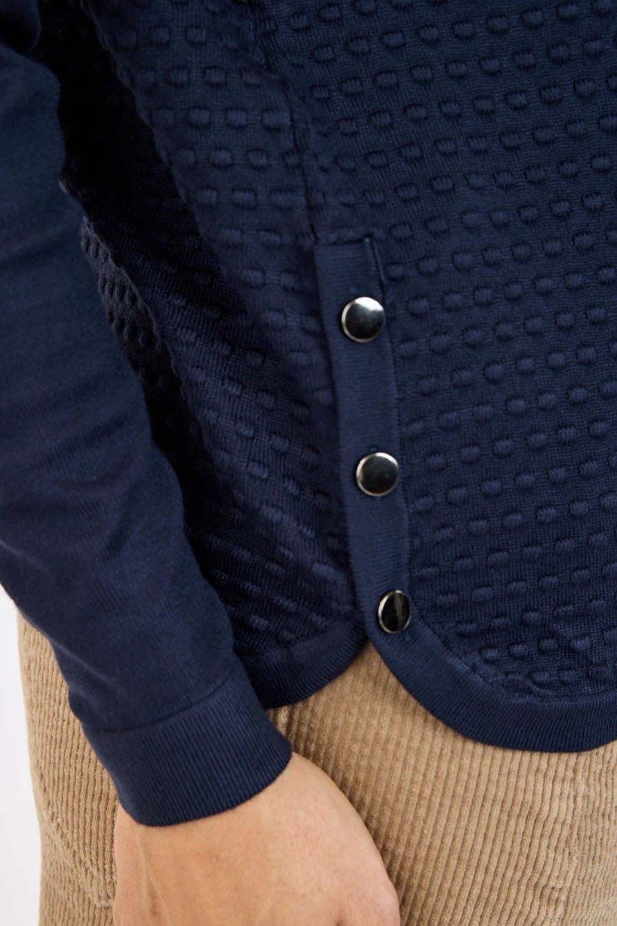 Brandtex har skapt en pullover som kombinerer behagelige materialer med god passform. Den myke viscosen gir en lett og behagelig følelse mot huden, mens innslaget av polyester sørger for at plagget holder fasongen.