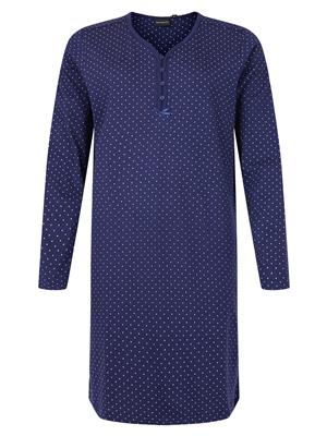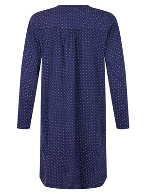 Langermet nattkjole med prikkete mønster og tre knapper foran.