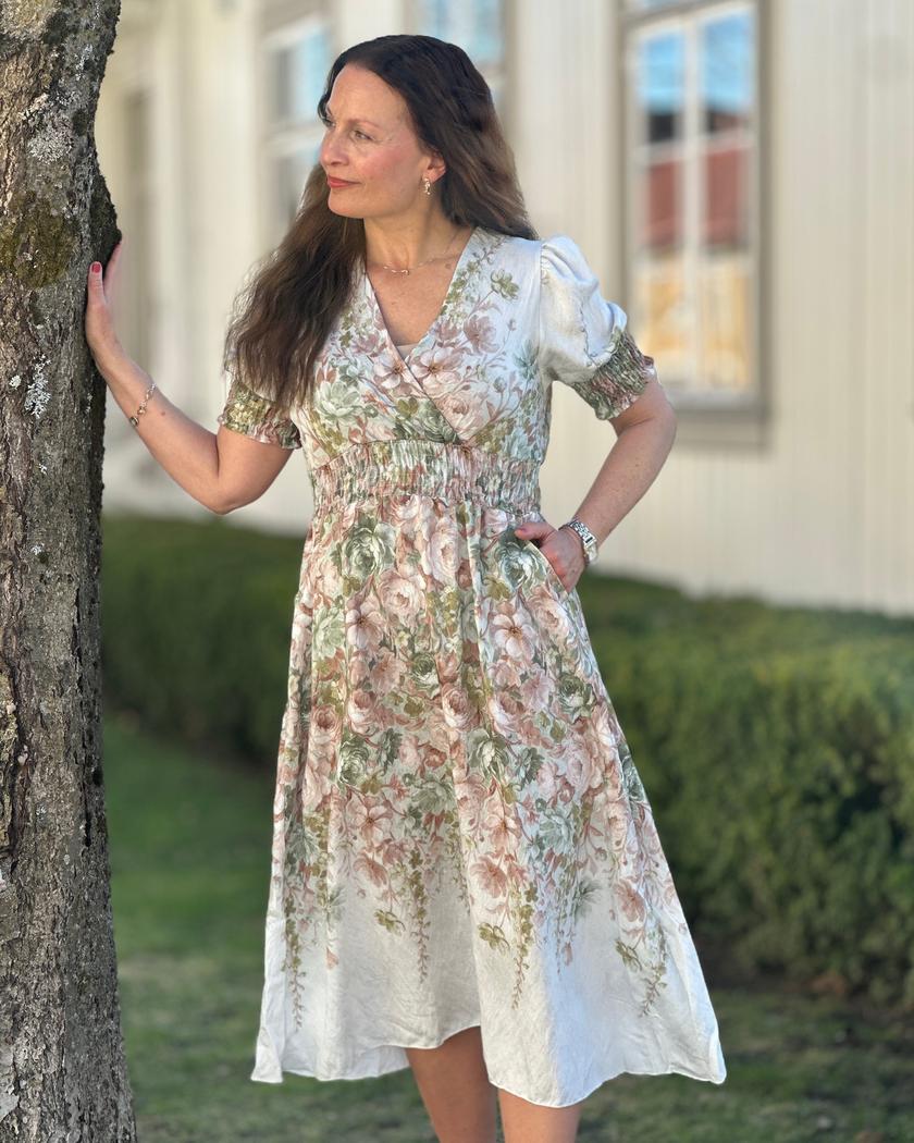 Mdclydia Dress fra Marta du Château har et blomstertrykk i rosa og grønne toner som gir kjolen et friskt utseende. Kjolen er laget av 100 % viskose, et materiale som er mykt og lett mot huden.