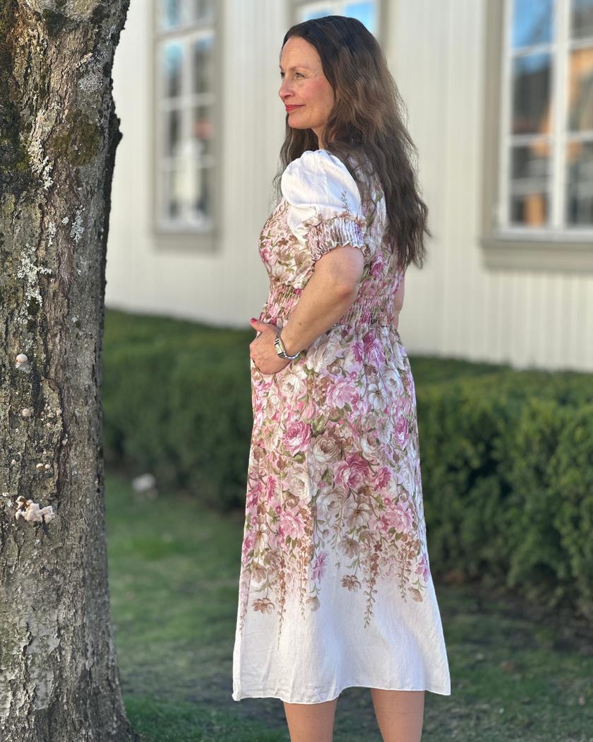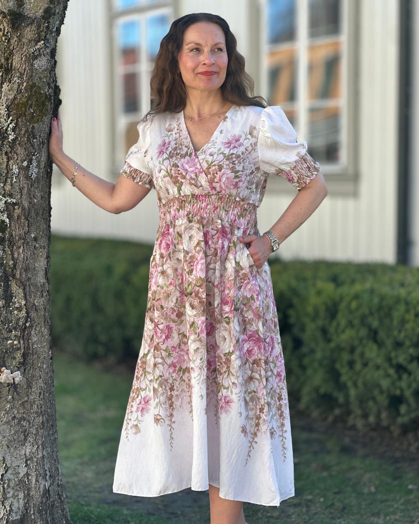 Viskosen gjør kjolen pustende, noe som er praktisk i varmt vær. Det myke materialet gir komfort gjennom dagen, mens den avslappede passformen sikrer bevegelsesfrihet. Kjolen er lett å kombinere med ulike sko og tilbehør.