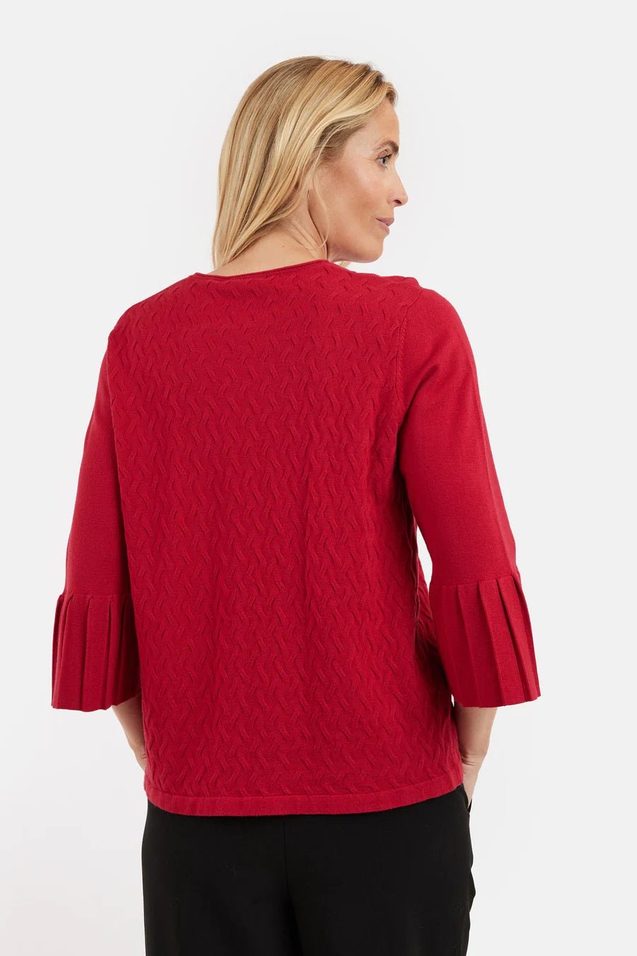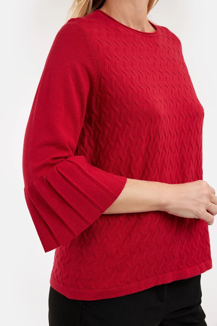 Plissert detalj på 3/4 ermene