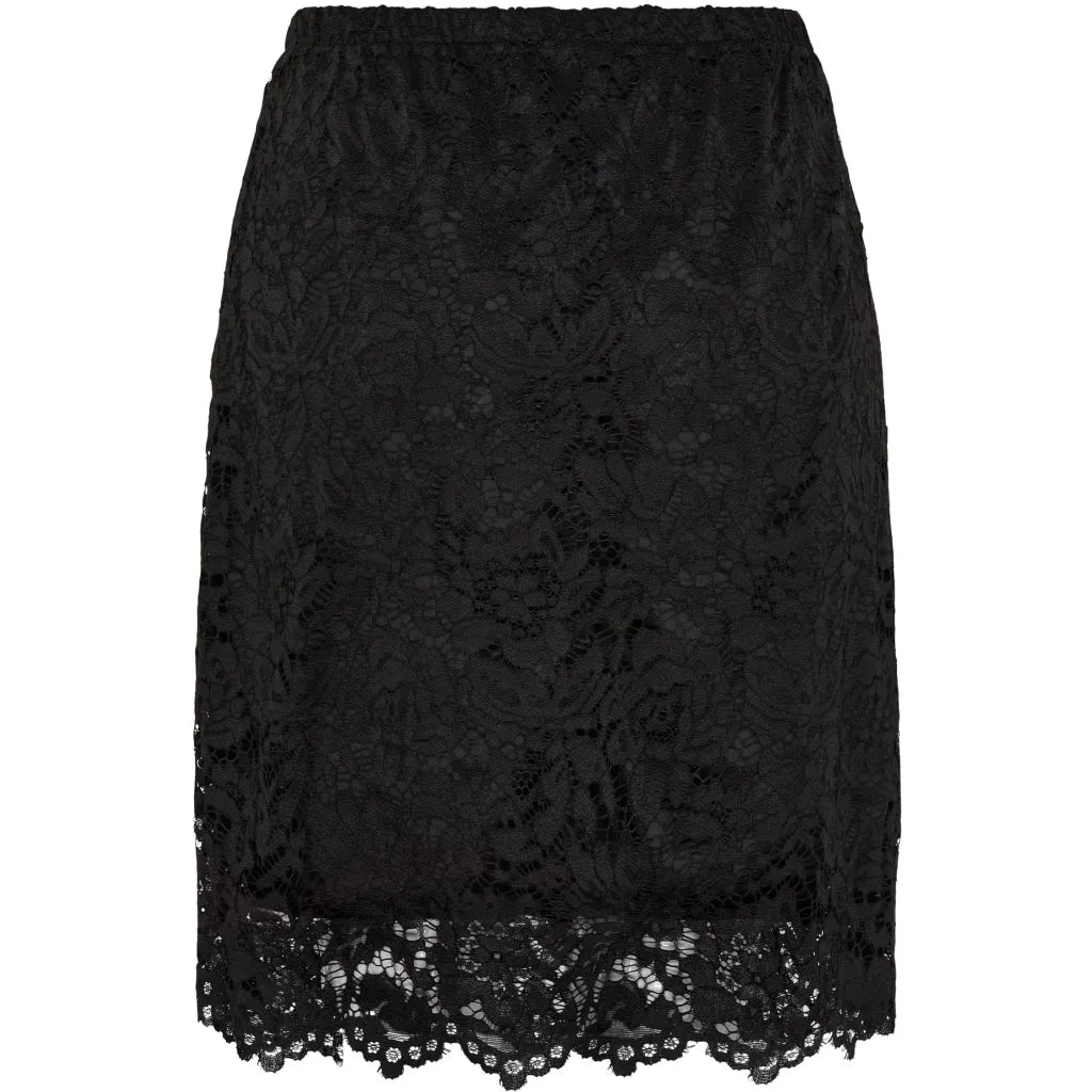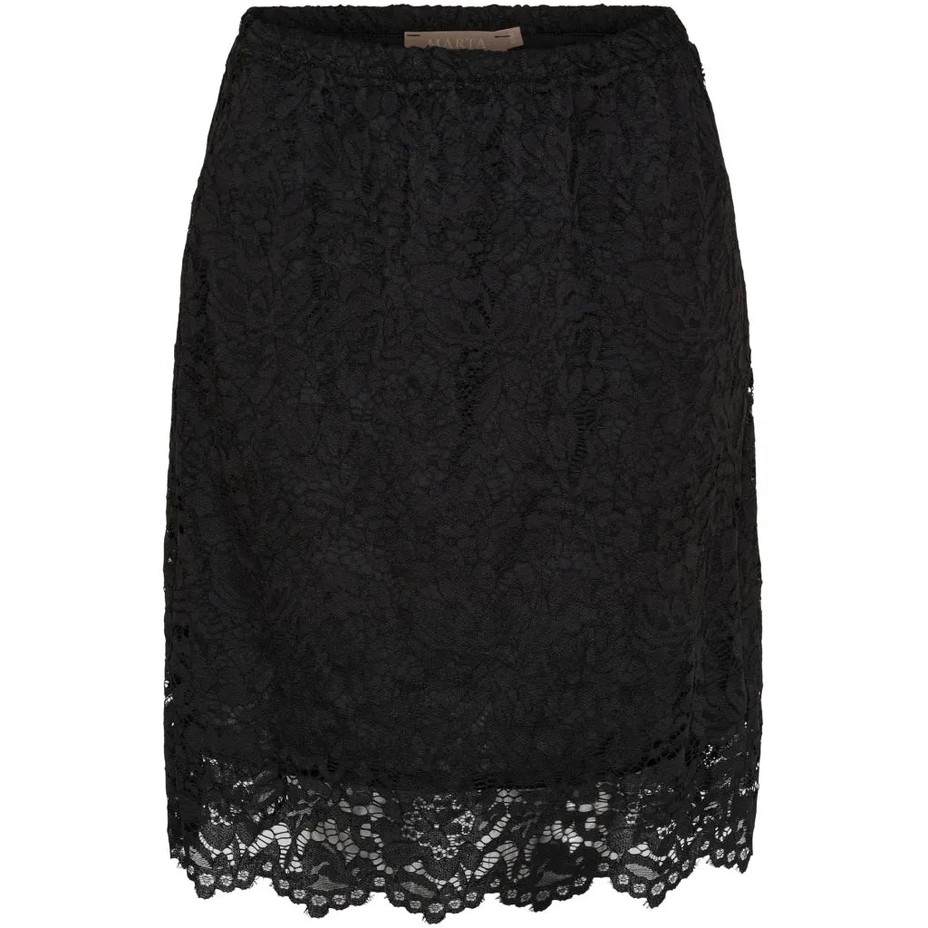 MdcGeyser skjørt fra Marta du Château har et komplekst blondemønster som gir plagget et distinkt utseende. Den dekorative blondekanten nederst tilfører en visuell detalj som skiller skjørtet fra enklere design. Skjørtet er laget i svart farge.
