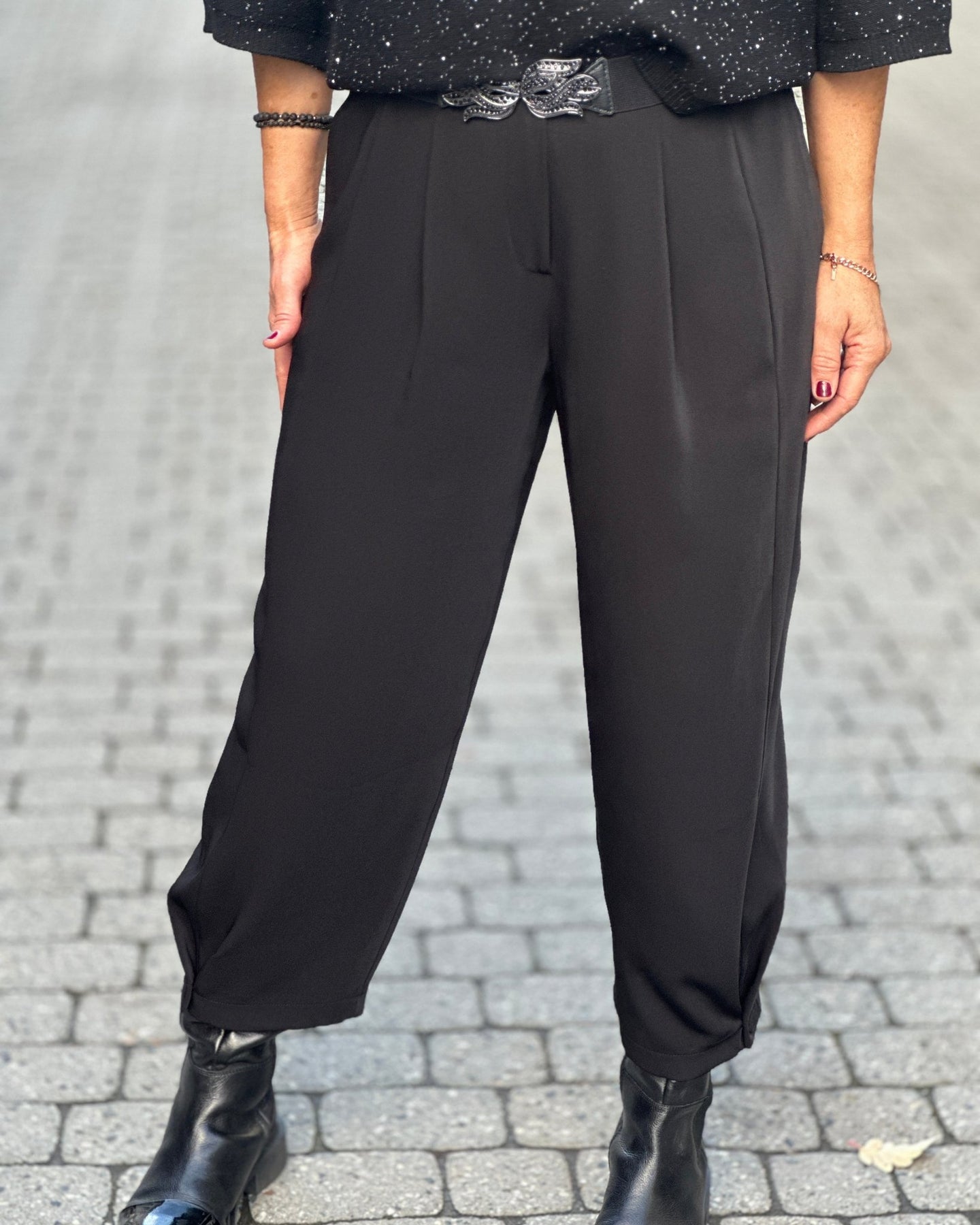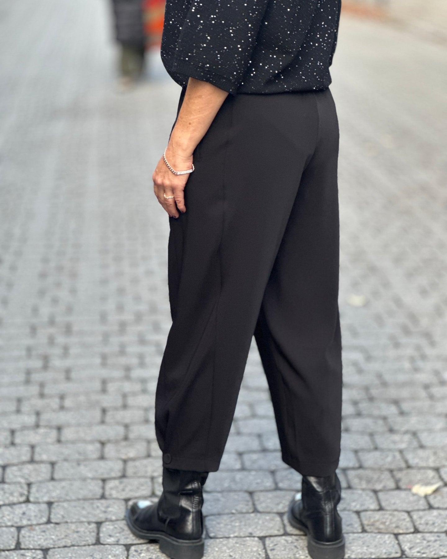 Knappene på bena lar deg enkelt variere uttrykket med en fin ballongeffekt. Beltehempene i midjen gir deg mulighet til å tilpasse passformen akkurat slik du ønsker.