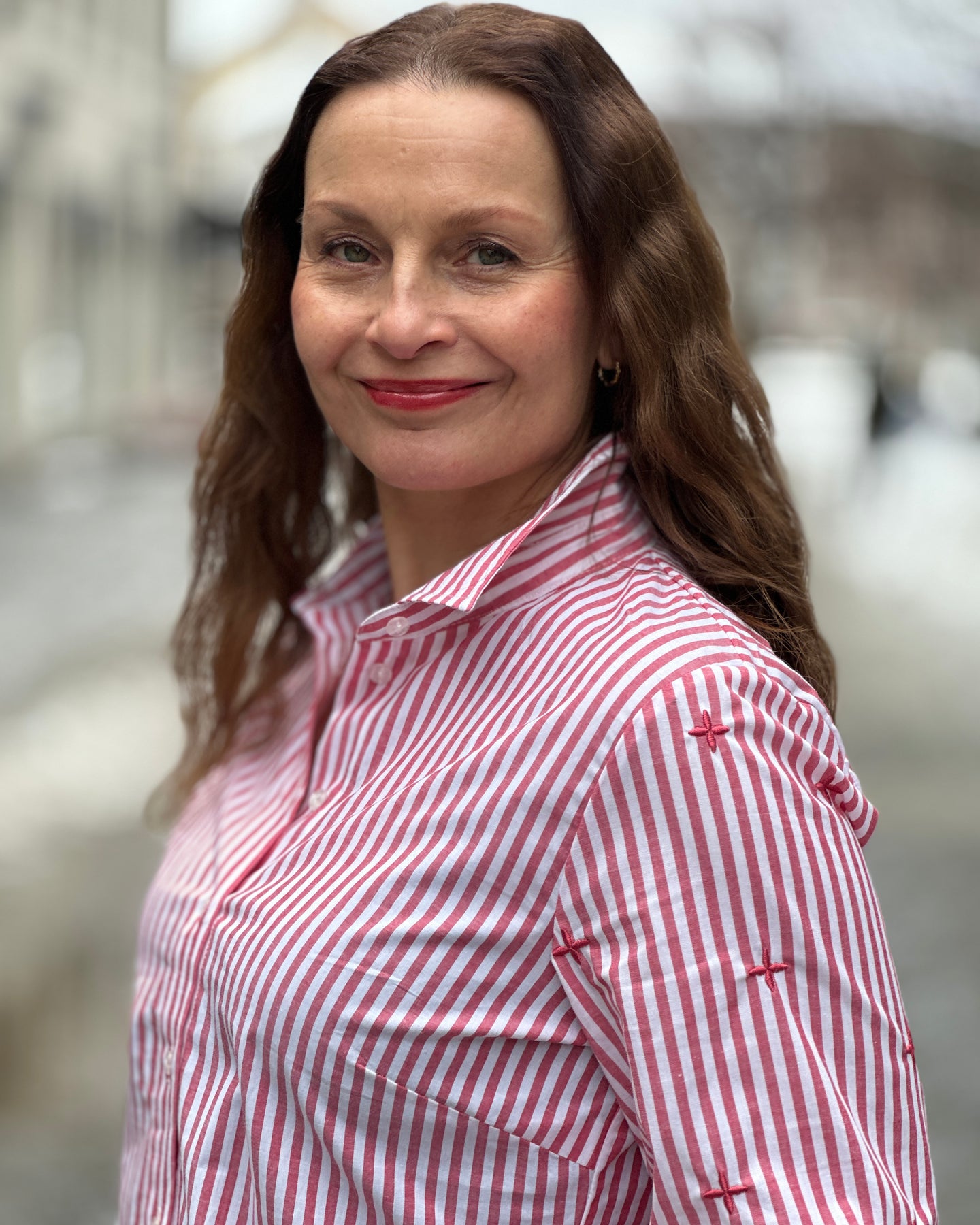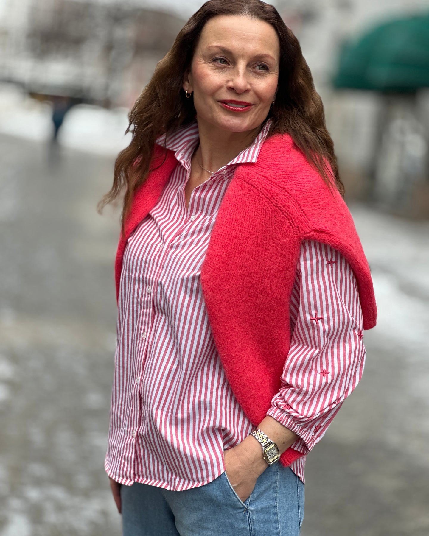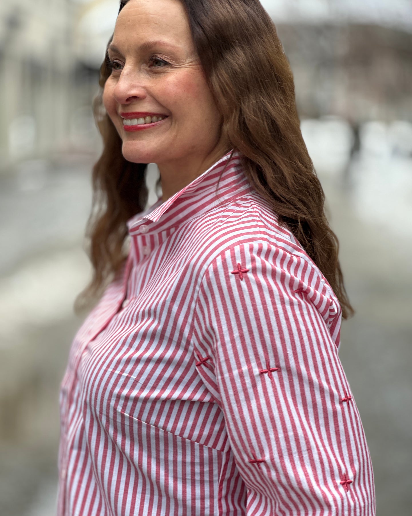 Skjorten har en krage og knappelukking foran, som gir den et ryddig utseende. Designet gjør den enkel å ta av og på. Stripemønsteret i hvitt og rødt gir et tidløst preg som fungerer godt sammen med jeans eller andre casual plagg.