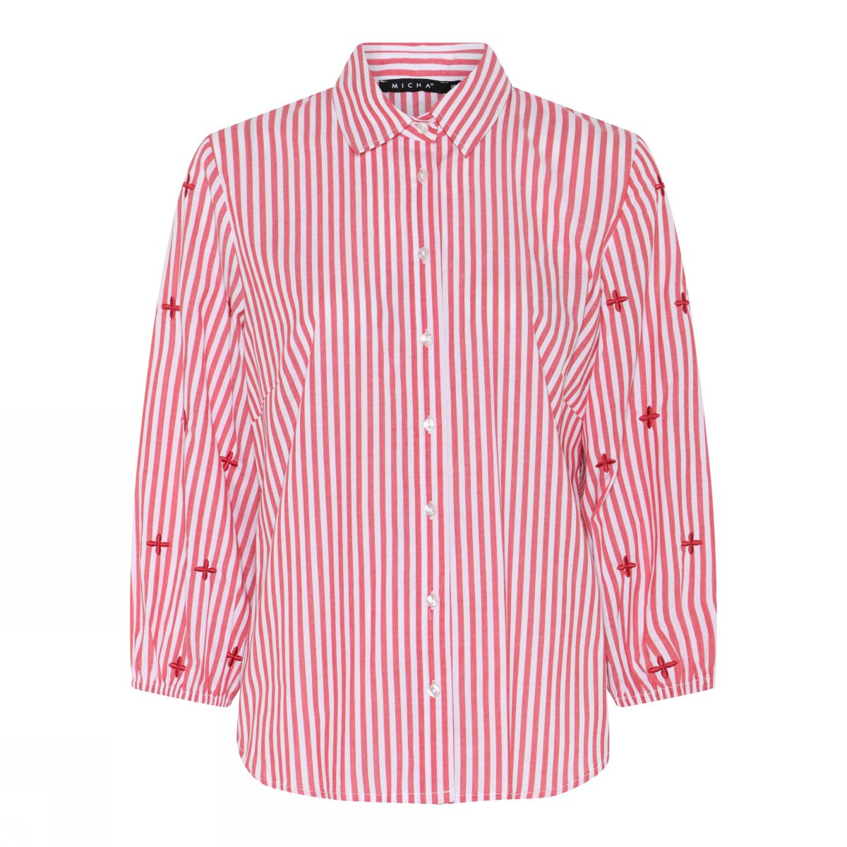 Denne skjorten fra MICHA er sydd i 100 % bomull, et materiale som gir en myk følelse mot huden. Bomullen sikrer god pusteevne, noe som gjør skjorten behagelig å ha på gjennom dagen. Det klassiske designet med hvite og røde striper passer til hverdagslige anledninger.