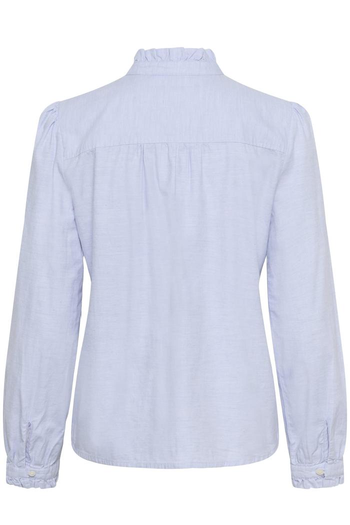 Glessiapw Sh fra Part Two er en skjorte laget av 100 % økologisk bomull. Det myke og pustende materialet gir behagelig komfort gjennom dagen. Skjorten har rysjekant langs kragen og knappestolpen, samt puffede ermer med knappede mansjetter.