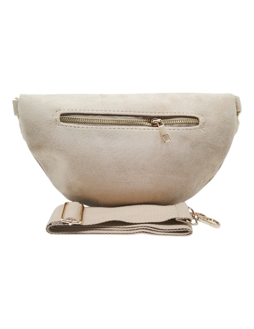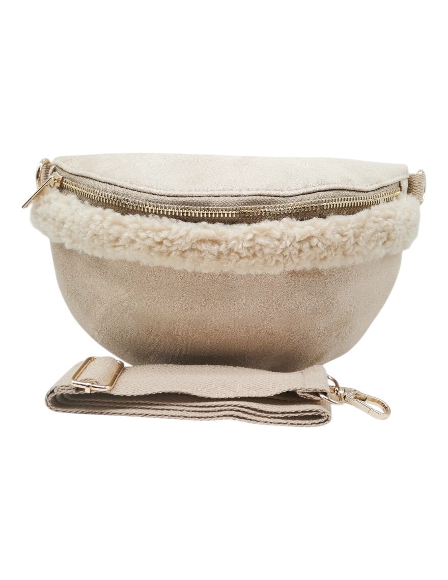 Den justerbare stroppen lar deg finne den perfekte passformen, enten du bærer vesken over skulderen eller rundt midjen. Pelsdetaljene langs toppen gir vesken et unikt preg som skiller seg ut i mengden.