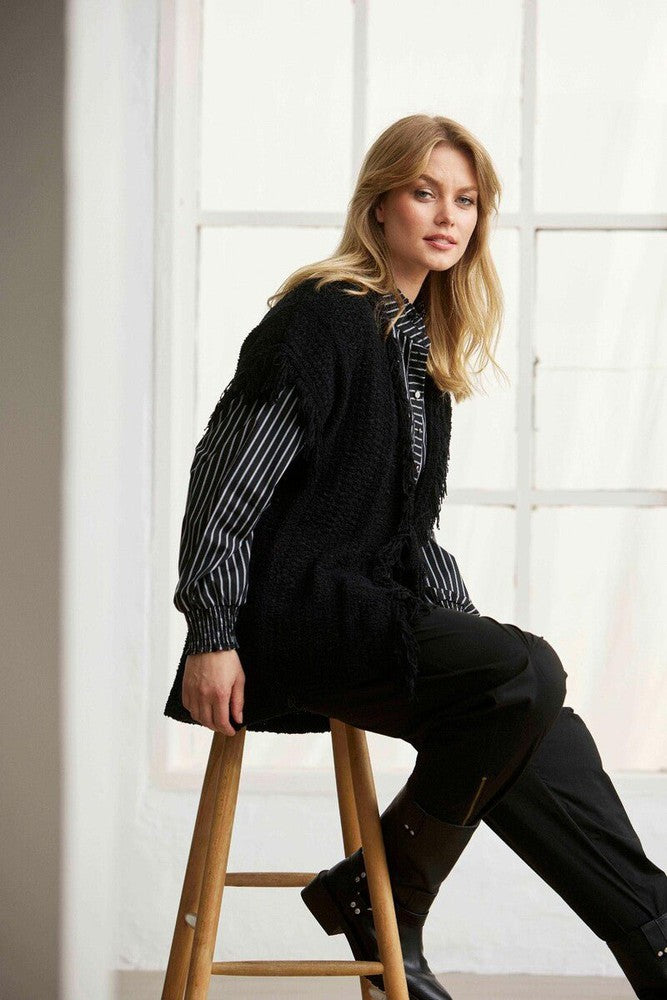 InFronts Poppy vest er en grovstrikket vest med karakteristiske frynsedetaljer langs fronten. Laget av 100 % bomull, tilbyr den komfort for daglig bruk. Vesten er et praktisk plagg som kan brukes til forskjellige anledninger, og den er enkel å kombinere med andre klær i garderoben.
