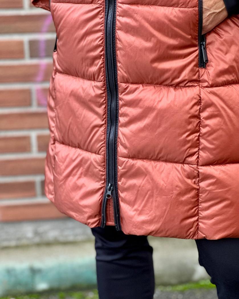 Den lette dunjakken holder deg behagelig varm takket være den effektive isolasjonen. Den lange lengden gir ekstra beskyttelse mot kulde, mens den normale passformen sikrer bevegelsesfrihet.
