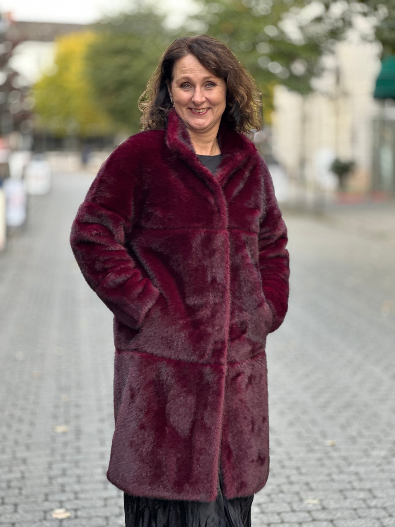 Denne lune fuskepels kåpen fra Micha kombinerer tidsriktig og samtidig klassisk look med god komfort.