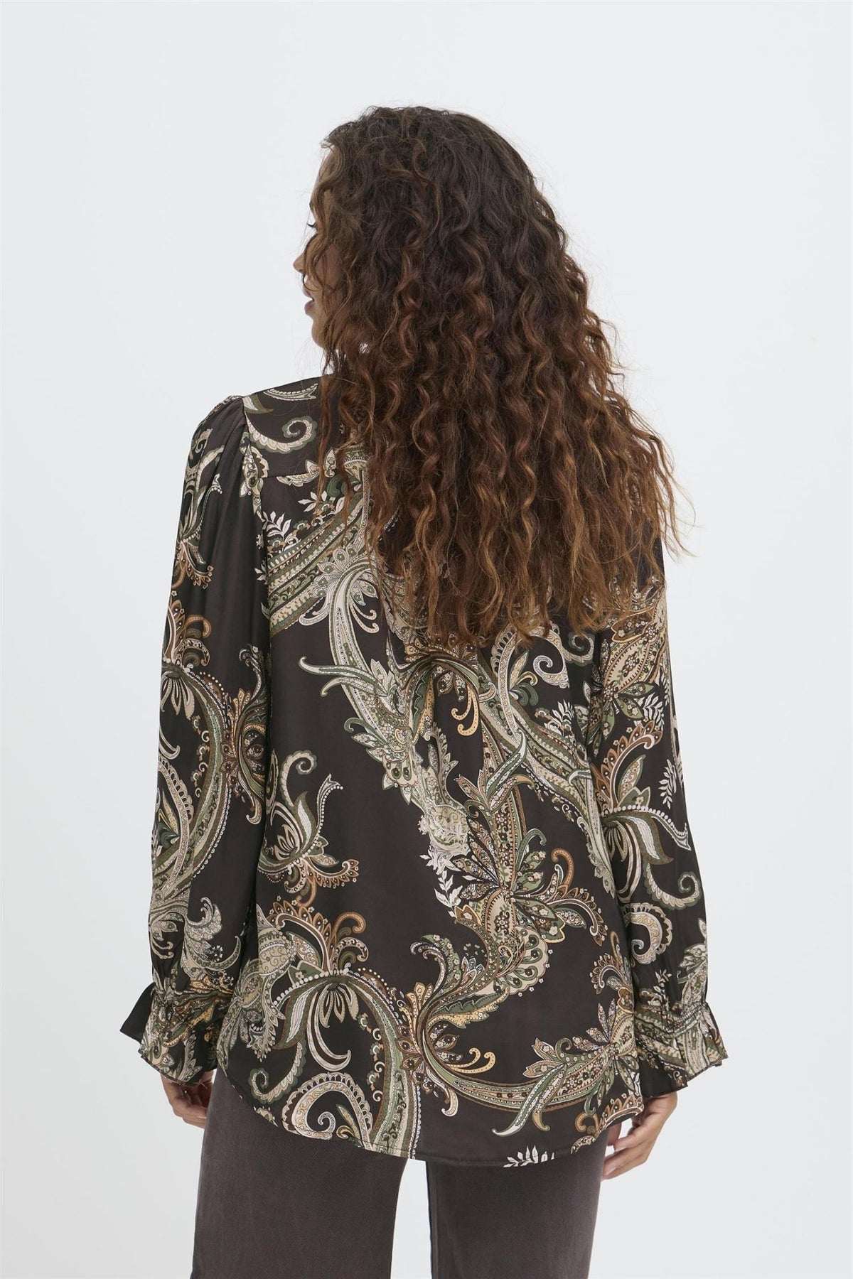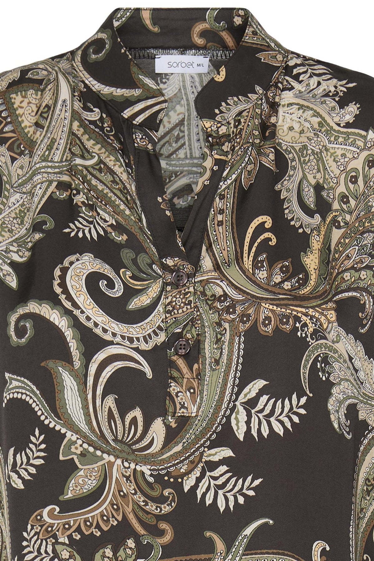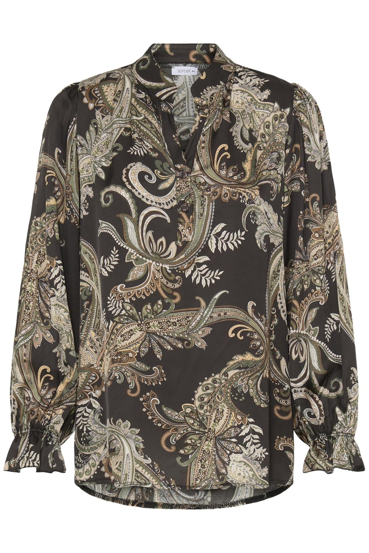 Sorbet presenterer Sbolivia Paisley Blouse, en bluse i ren viskose som gir en behagelig følelse mot huden. Det dekorative paisleymønsteret i Chocolate Torte skaper et raffinert uttrykk som passer godt til både hverdags og fest.
