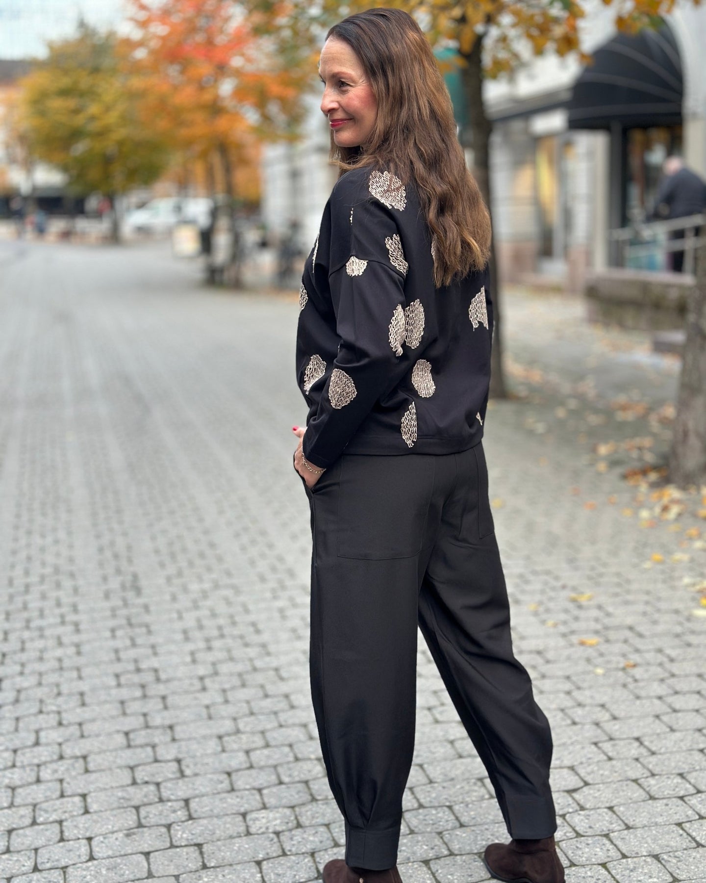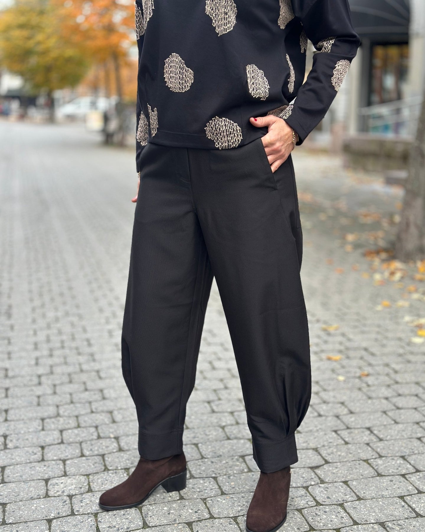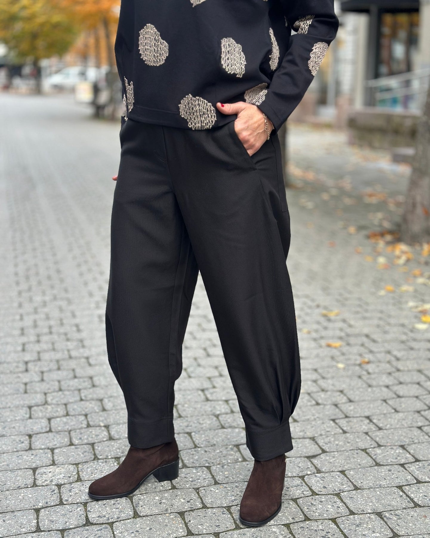 Disse buksene fra NOEN har en moderne vidde i bena som gir et elegant fall. Praktiske sidelommer og den komfortable passformen gjør dem til et naturlig valg for både hverdagsbruk og finere anledninger.