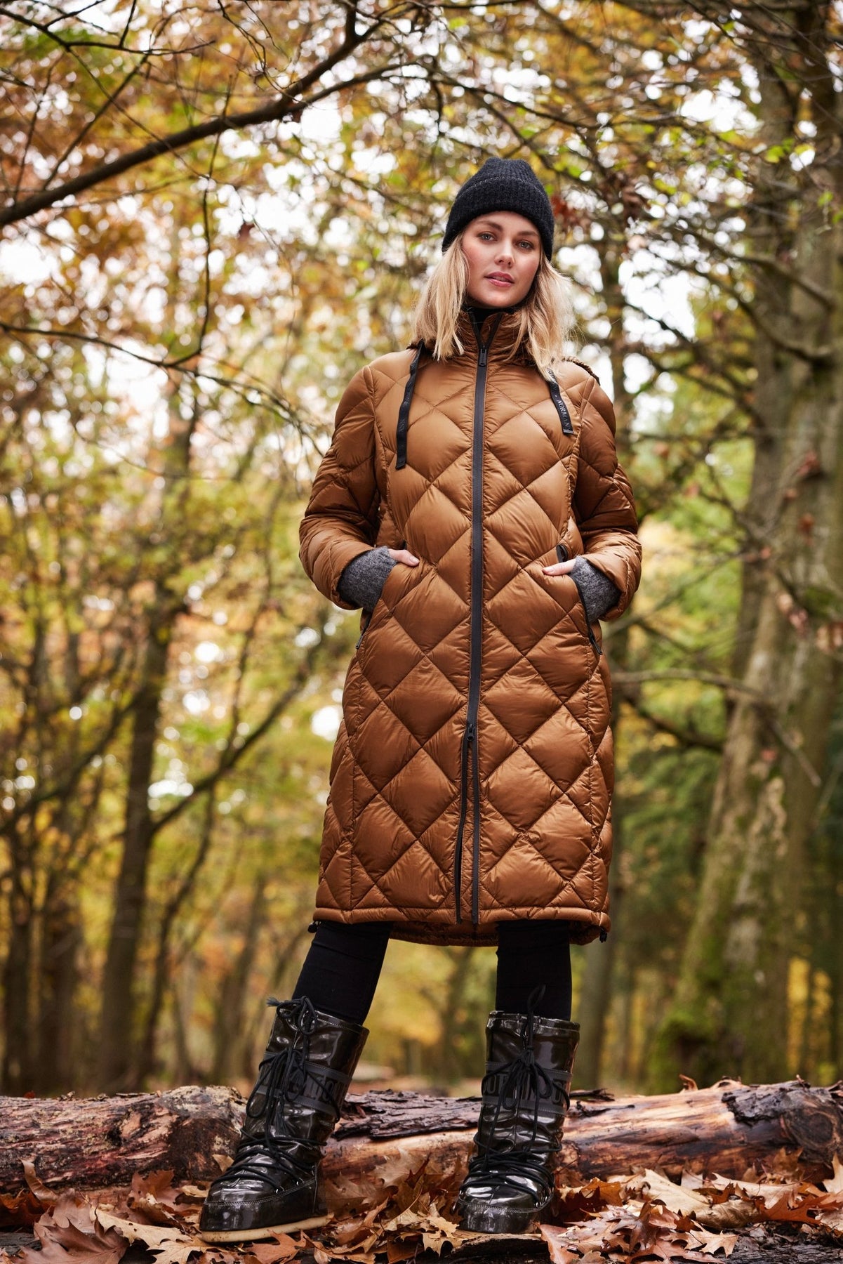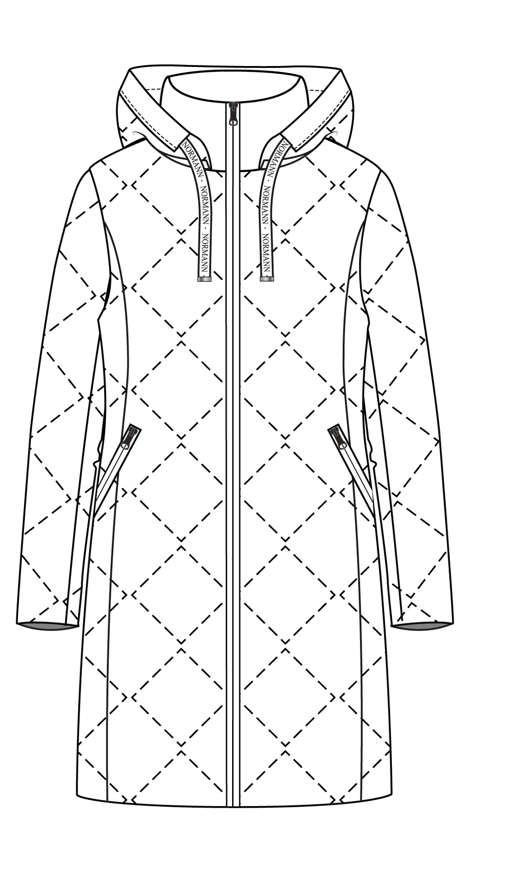 Det diamantformede quiltede mønsteret fordeler dunet jevnt, slik at isolasjonen holder seg på plass og gir konsekvent varme. To glidelåser foran gjør det enkelt å åpne og lukke jakken, mens to frontlommer med glidelås gir trygg oppbevaring av nøkler, telefon eller andre småting du trenger tilgang til.