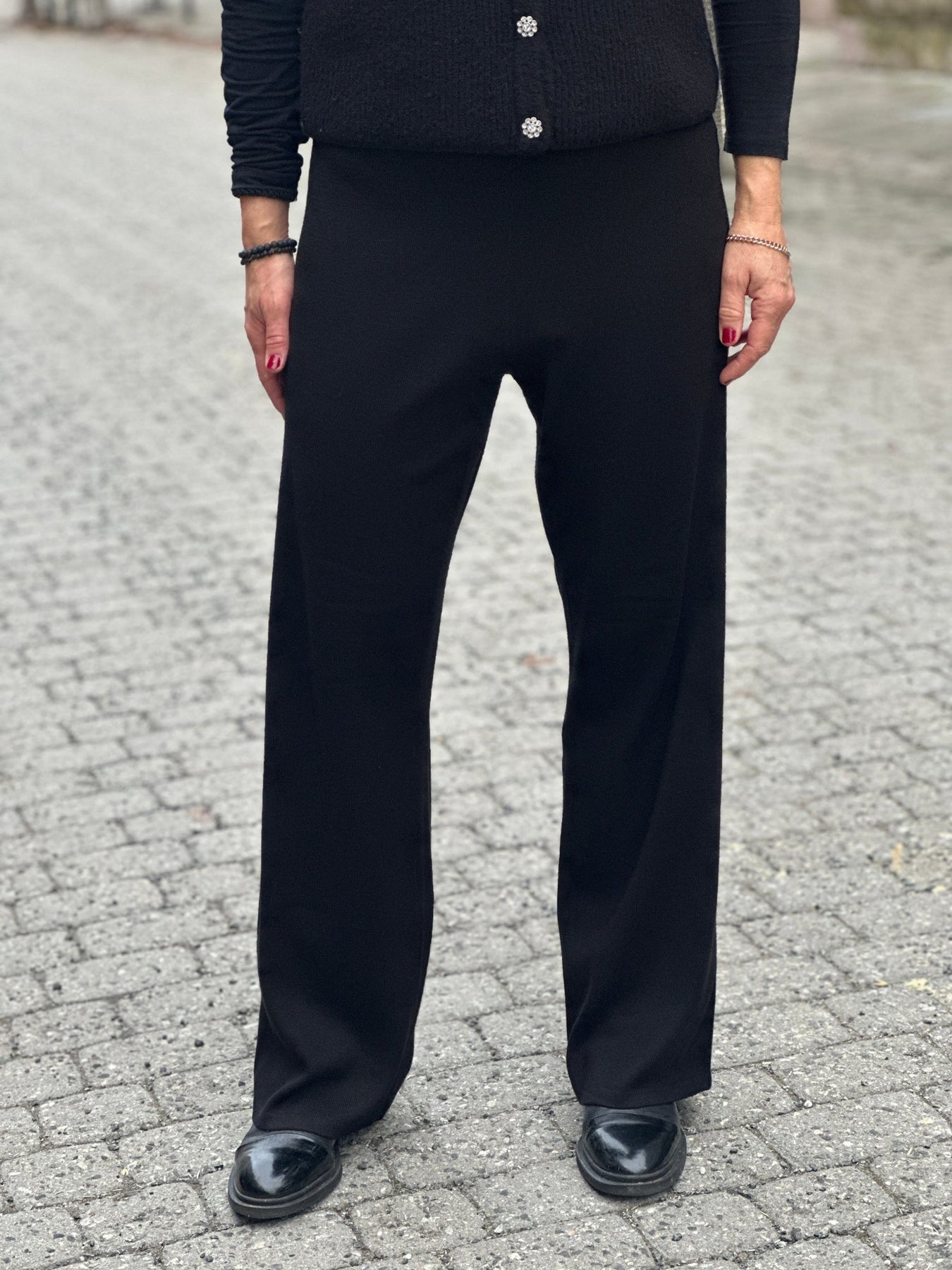 78 Bukse m/strikk passer til avslappede situasjoner og daglige gjøremål. Det enkle designet gjør den lett å kombinere med andre plagg i garderoben. Materialkombinasjonen bidrar til at buksen er behagelig å ha på gjennom dagen, mens den justerbare passformen gir ekstra komfort.