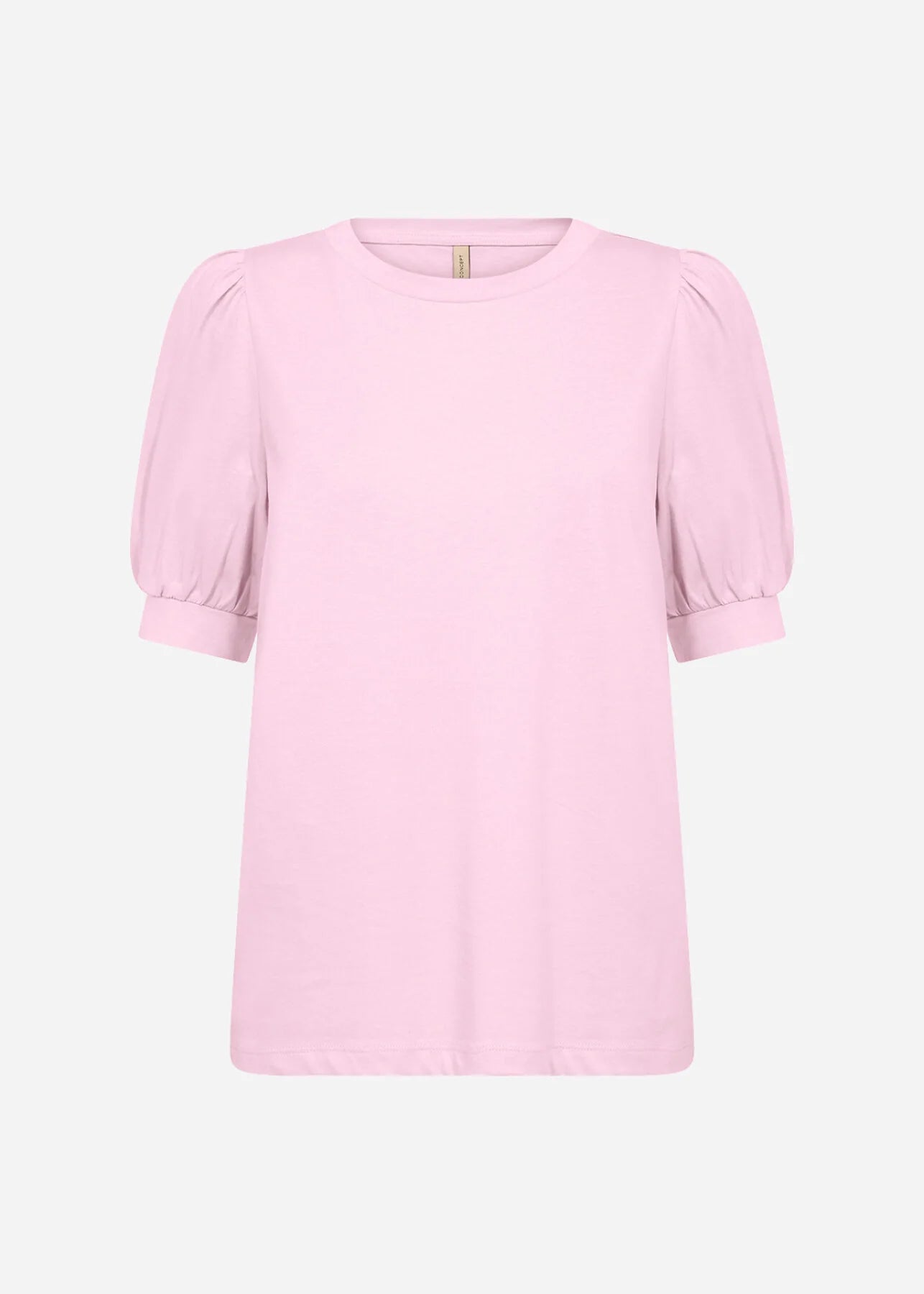 Den økologiske bomullen sikrer god komfort i daglig bruk. T-skjorten har et moderne design med puffede ermer som gir et trendy uttrykk. Den runde halsen gjør den enkel å kombinere med både jeans og skjørt.