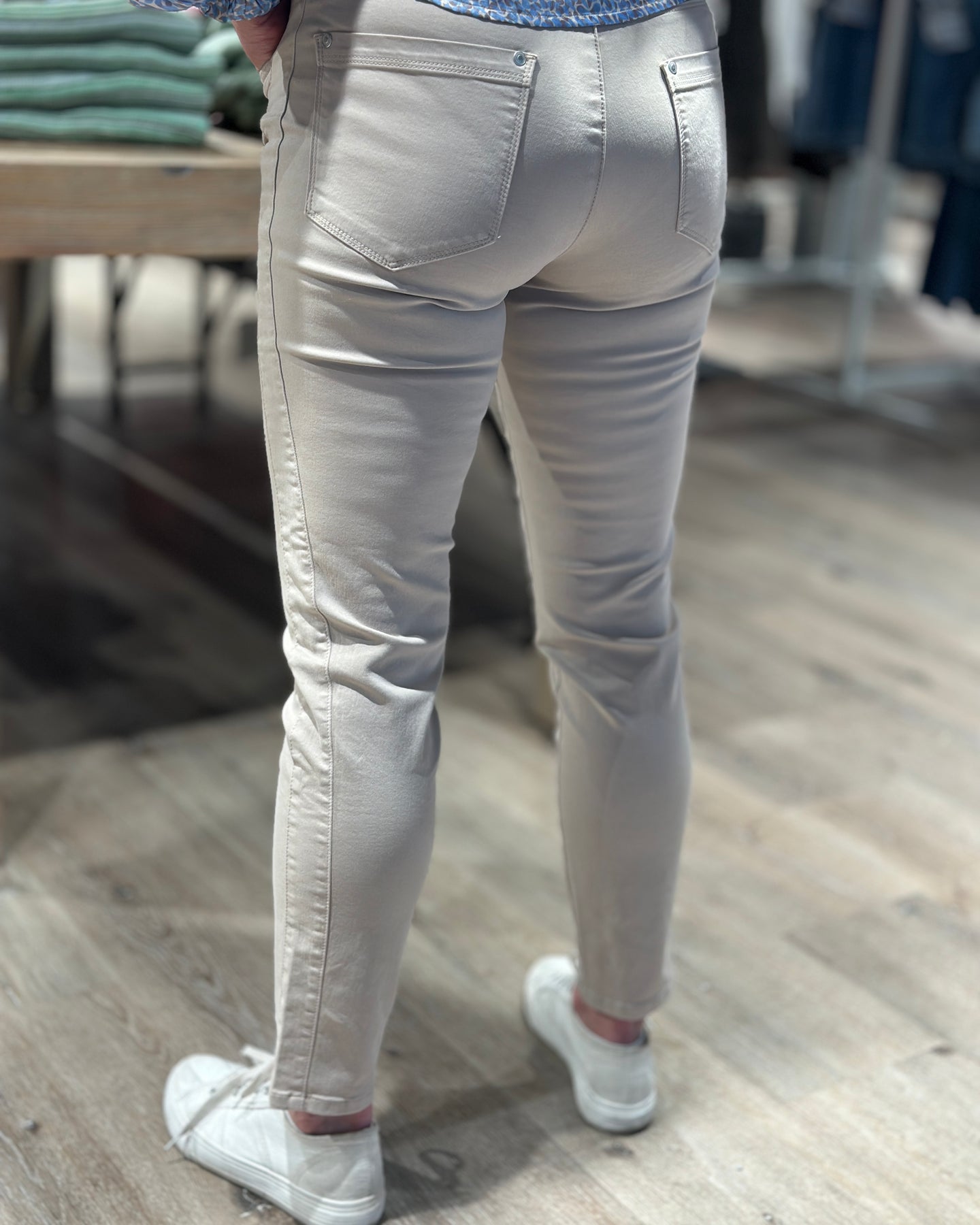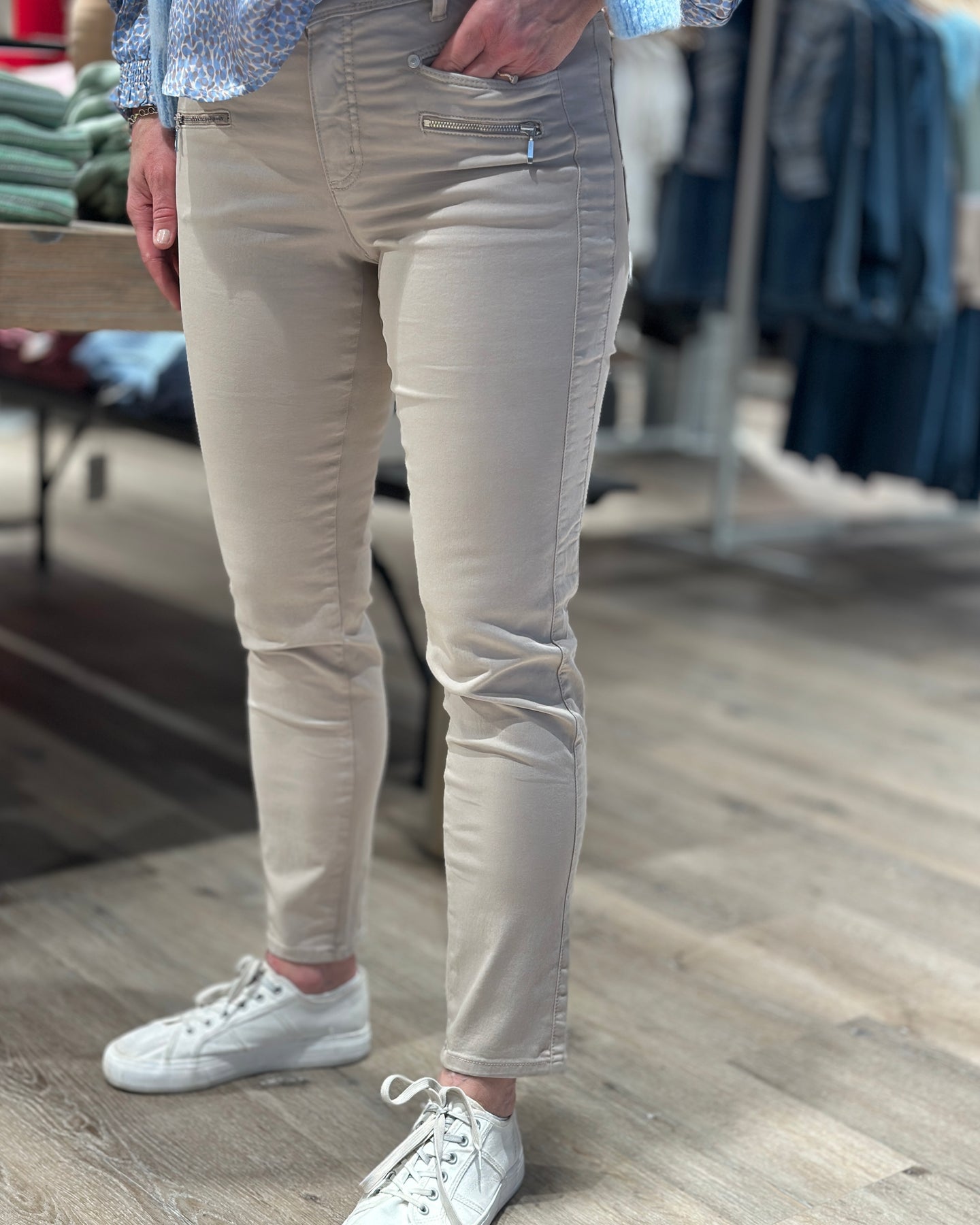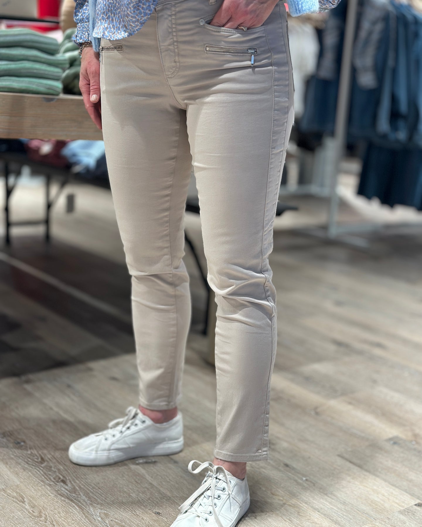 Det strekkbare materialet gjør Rany-buksene komfortable for daglig bruk. Sandfargen lar seg enkelt kombinere med andre plagg i garderoben. Lommene gir plass til nødvendige småting, mens lynlåsdetaljene holder tingene dine trygge.