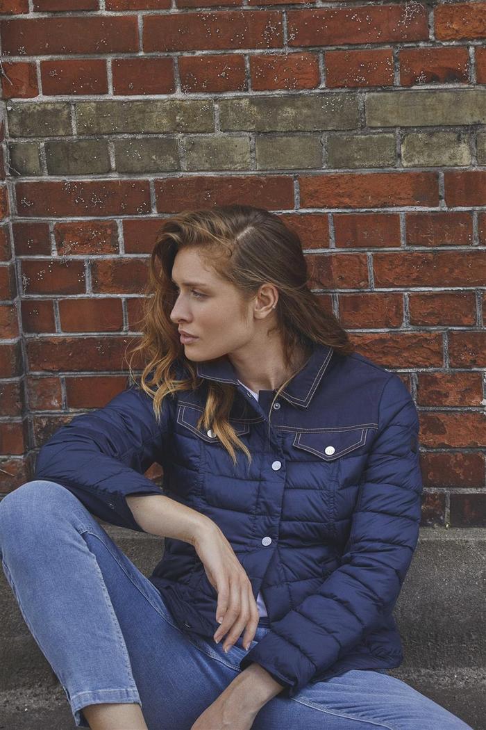 Den vatterte jakken gir god komfort i kjøligere vær uten å være for tykk. Brystlommene med klaff gjør den praktisk for daglig bruk, mens det moderne designet med kontrastdetaljer passer til både casual og mer stilige antrekk.