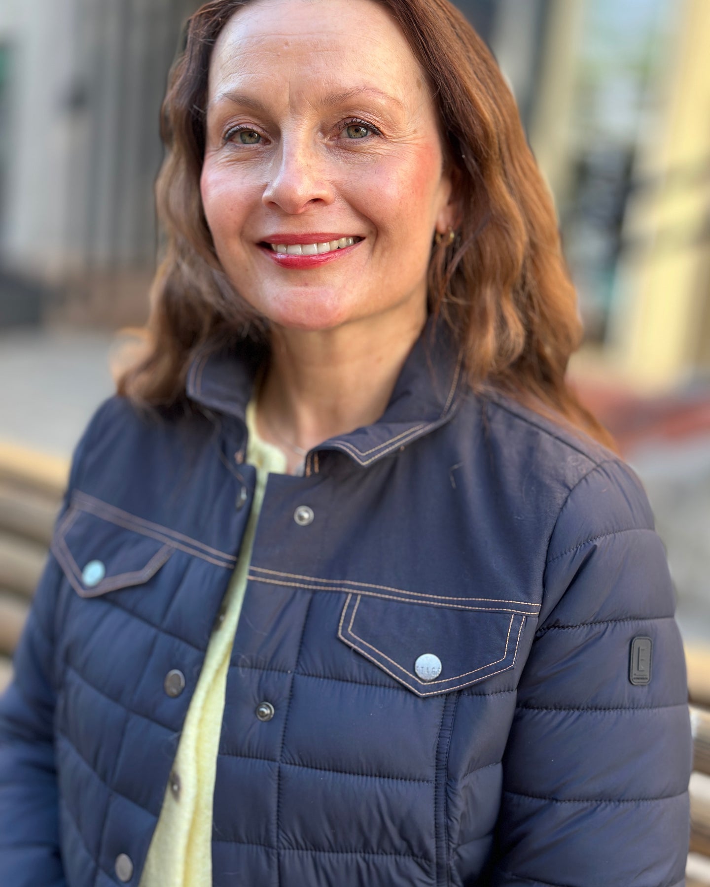 Jakken har en knapplukking foran som gir et stilrent preg. Markante stikninger langs skuldrene og øverste rygg fremhever passformen, mens kontrastsømmene skaper et moderne uttrykk. Materialet er laget av 100 % resirkulert polyamid og 100 % resirkulert polyester.