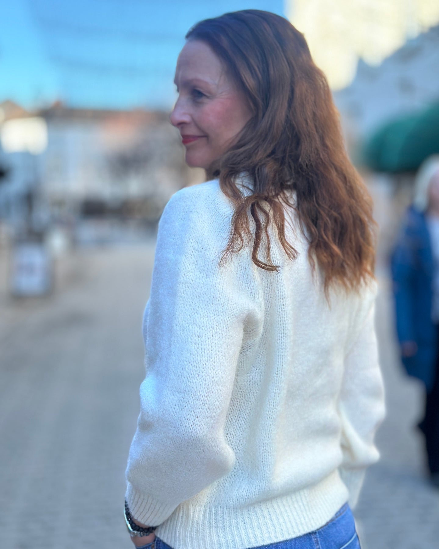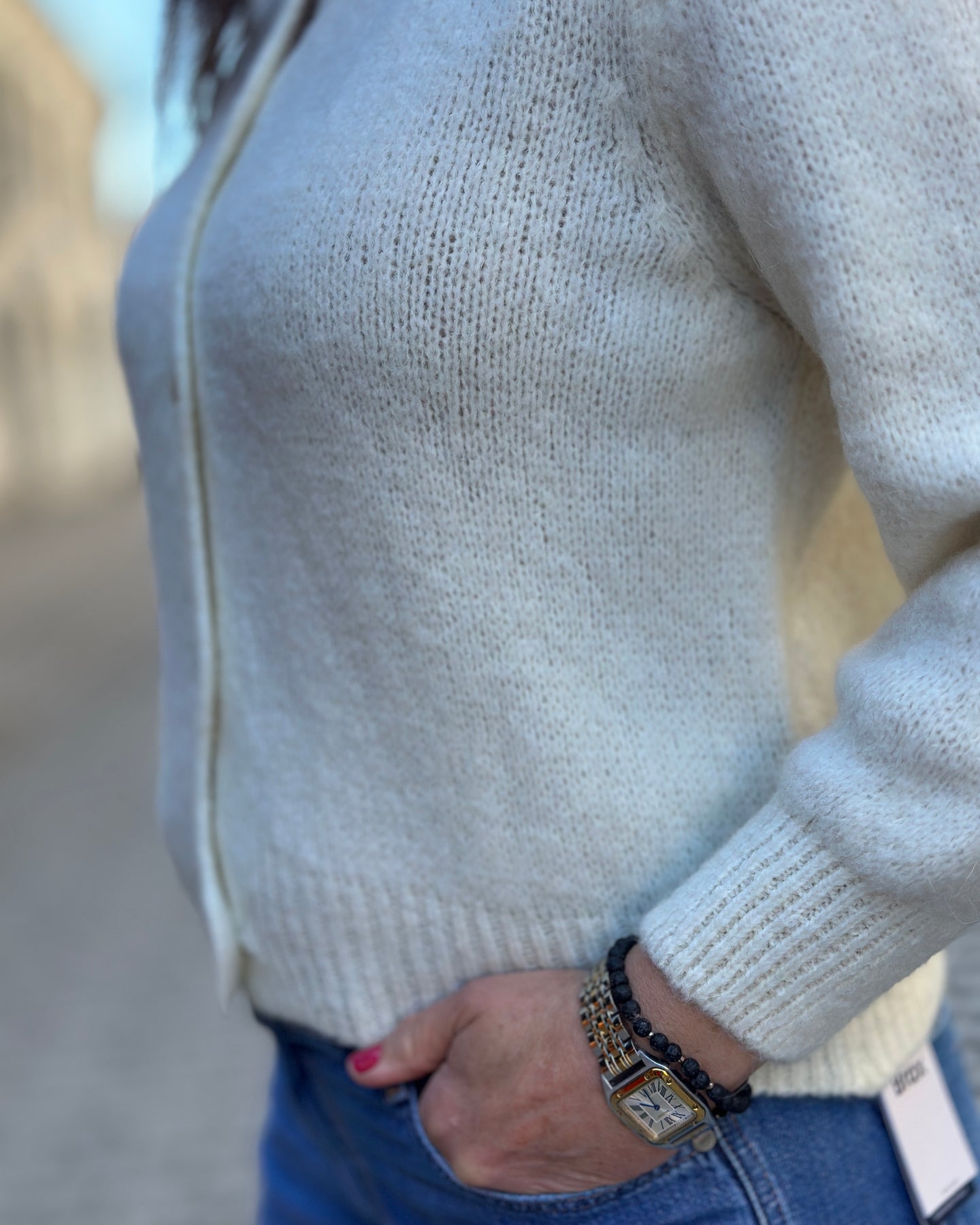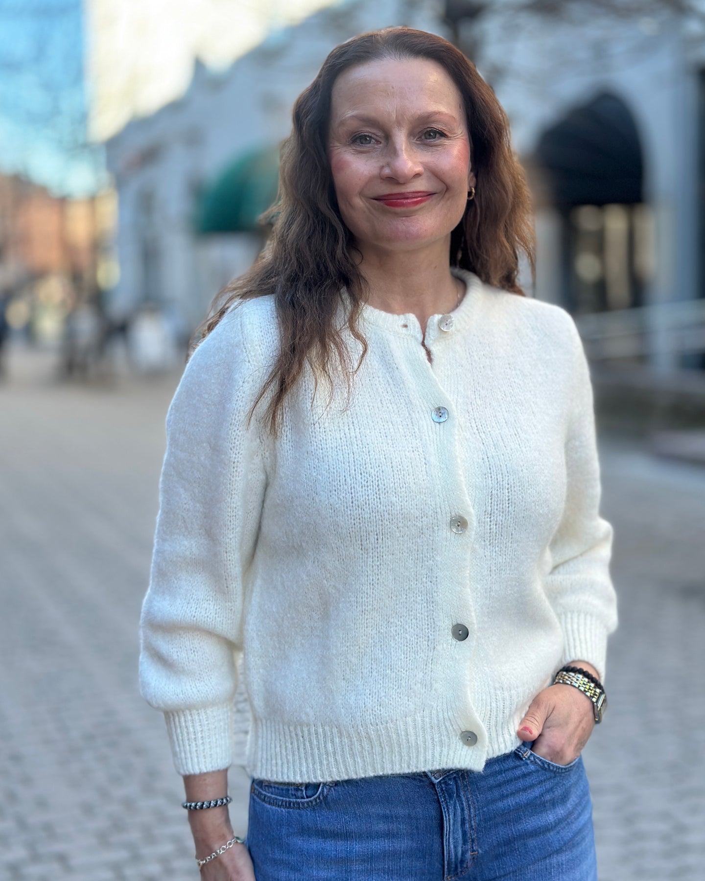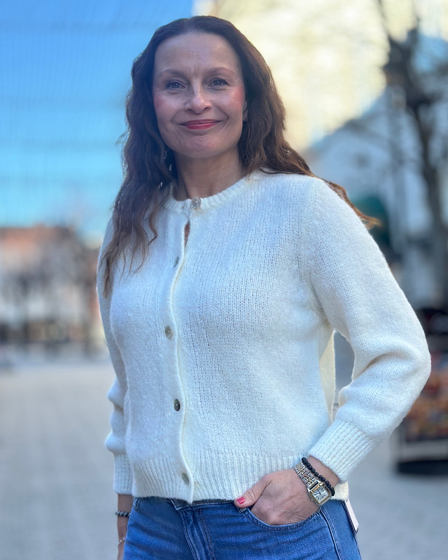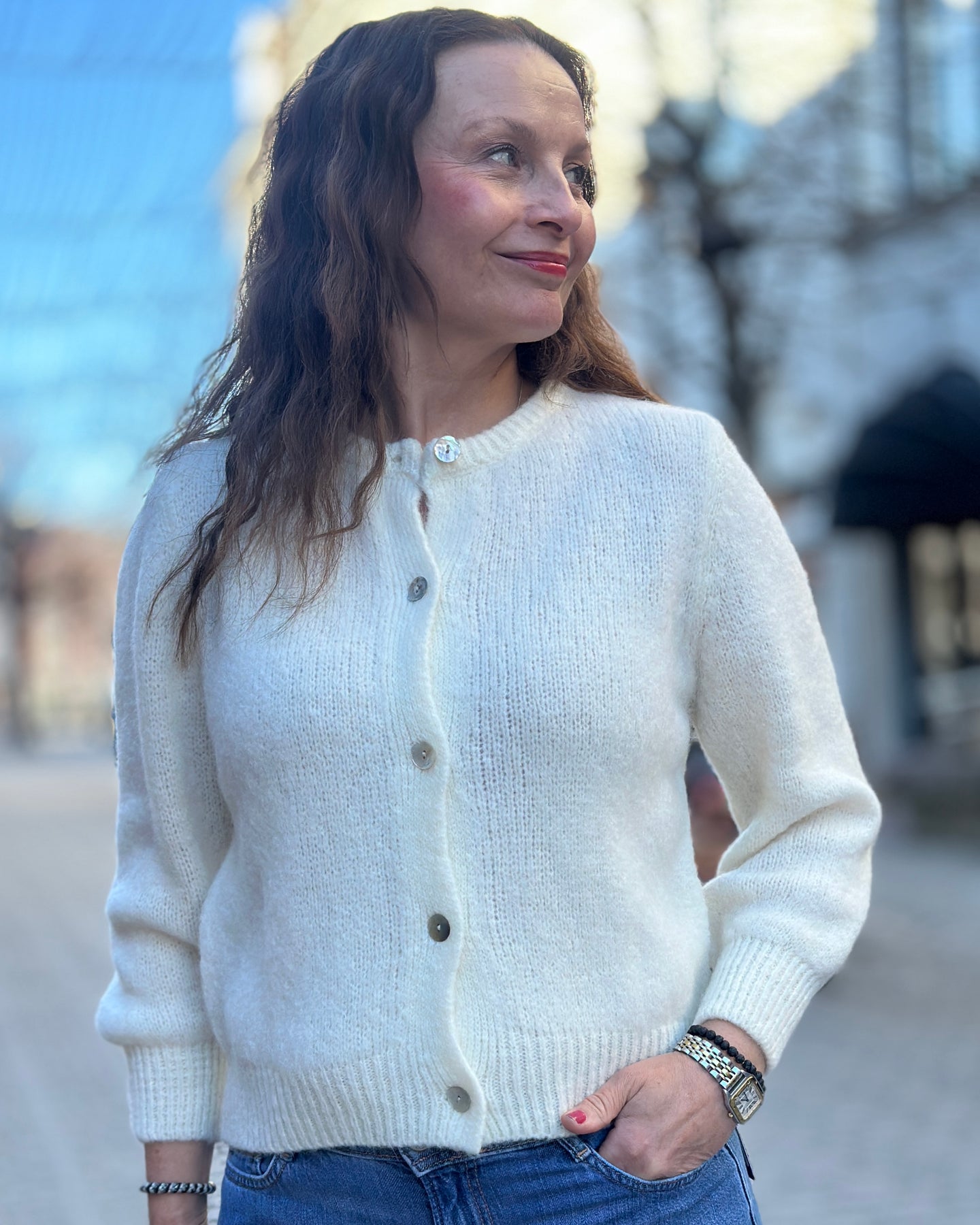 SBGULVIG KNIT CARDIGAN i antikk hvit er det perfekte tilskuddet til din garderobe. Denne elegante strikkegenseren kombinerer stil og komfort, og passer perfekt til både hverdagsbruk og mer formelle anledninger.