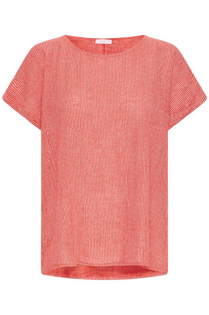 Sbalexa Ps Ss Tee er laget av 100 % bomull, som gir en myk følelse mot huden. T-skjorten har et vertikalt stripemønster i rødt og hvitt, og kommer i en hibiskusfarge – en lys og livlig rød nyanse.