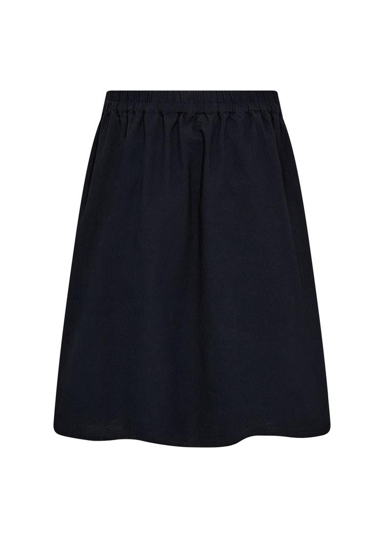 Sc-Cissie 57 fra Soyaconcept er et ensfarget skjørt i dyp navy-farge. Skjørtet er laget av 100 % bomull, noe som gir en myk følelse mot huden. Det enkle designet gjør det lett å kombinere med andre plagg.