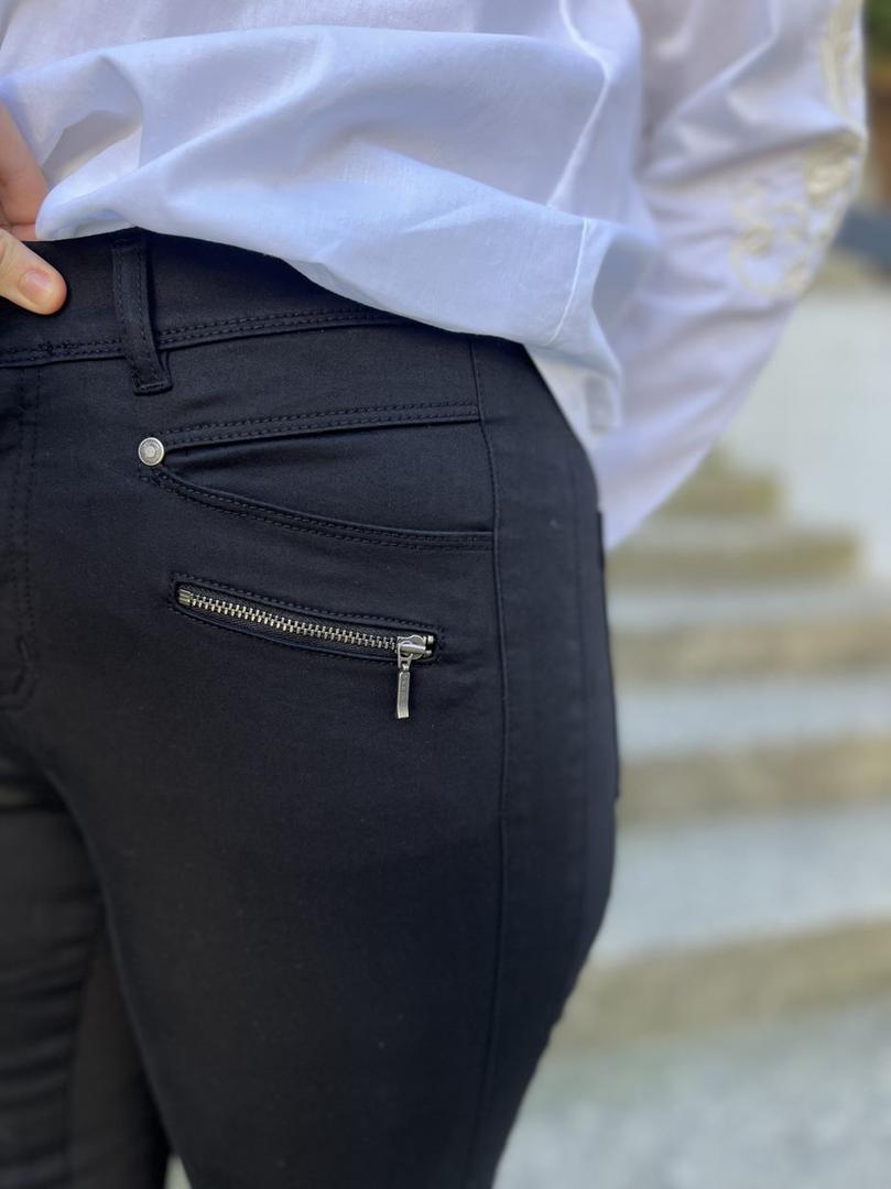 2BIZ Rany-buksen er en populær stretchbukse med høyt liv og et flatterende design. Den har et innfelt stykke i siden som gir en slankende effekt, samt praktiske glidelåsdetaljer. Buksen er kjent for sin gode stretch og behagelige passform.